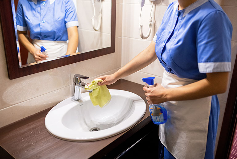 Pustite nekaj minut, da se mešanica spoprime z oblogami, nato pa obrišite s čisto krpo. Če bo ostalo še kaj vodnega kamna, postopek ponovite. V primeru bolj trdovratnih zaplat pa se lahko nad vodni kamen spravite tudi z nerazredčenim kisom.